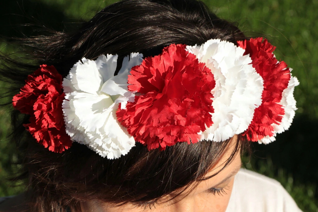 Wianek Bialo Czerwony Duze Kwiaty Opaska Kibica 8875499137 Allegro Pl